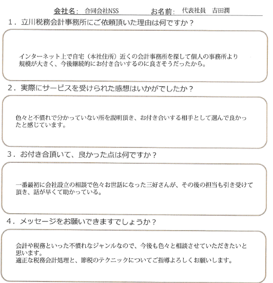 皆さまから頂いたアンケートを頂きましたので、その一部をご紹介します。